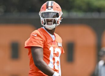 Sanders is having a strong start to minicamp, creating a lot of hype regarding whether he can earn the starting job in Week 1. The quarterback stats are there, but keep in mind all players are wearing shells and shorts. It’s not surprising to see a player look good in the early portion of OTAs. Sanders did go 9 of 14 with three touchdowns in the second OTA practice open to the media this week, while third-round rookie Dillon Gabriel went 11 of 20 for three touchdowns.