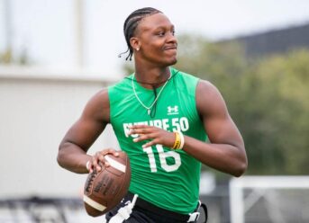 The young star boasts what 247Sports director of scouting Andrew Ivins described as “a rare blend of pocket-passer size and dual-threat athleticism to go along with a high-powered arm.” Though he plans to stick exclusively with football at the next level, Brandon’s athleticism is also evident on the hardwood, where he offered significant contributions to a Grimsley basketball team that finished 23-6 in 2023-24.