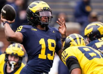 Underwood then uncorked a nice pass down the sideline to tight end Jalen Hoffman, who sprinted down the field for an 80-plus yard touchdown. Though Michigan’s spring game isn’t televised live, highlights of Underwood’s touchdown toss were posted to social media.